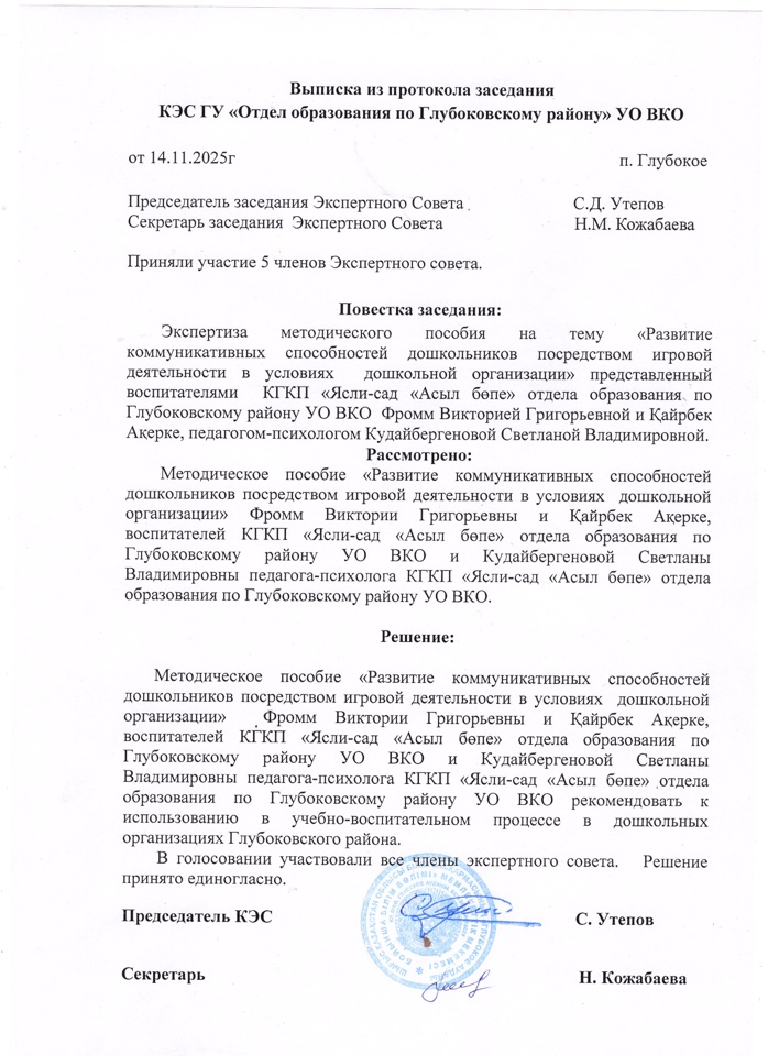 КГКП Ясли - сад «Асыл бөпе» отдела образования по Глубоковскому району управления образования Восточно - Казахстанской области
